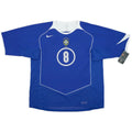 The Brazil 2004/06 away jersey with Kaka’s number 8 is a classic Nike design from the Total 90 era, featuring a rich royal blue base with sleek white side panels and piping. The embroidered CBF crest with five stars sits proudly on the chest alongside the Nike swoosh, symbolizing Brazil’s world dominance at the time. Kaka’s “8” appears in Nike’s bold font, with a small number on the front and the larger print on the back. Lightweight and breathable, the shirt was built for performance while maintaining a clean and stylish look. Remembered from Brazil’s 2006 World Cup qualifiers and 2004 Copa América campaign, it remains a favorite among retro jersey collectors.