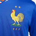 The FFF 2024 Home kit takes inspiration from classic France jerseys of the 1960s while also celebrating the vibrant and diverse culture of the country. An oversized Cockerel at the chest and the tri-color French flag ribbing leave no doubt which country this jersey represents.